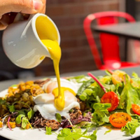 Flavor, culture, and community come together under one roof at Bezoria, an authentic Middle East street food restaurant with a build-your-own twist. Catering to a wide range of diets—including vegan, gluten-free, and halal—Bezoria offers a menu packed with perfectly seasoned chicken shawarma, crispy falafel, and more crave-worthy options, served in generous portions. Need catering for the office? Bezoria offers buffet spreads, lunch boxes, and à la carte trays that everyone will love.