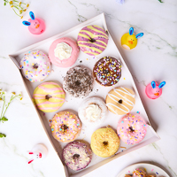 Not all heroes wear capes. Some arrive with Duck Donuts boxes for the break room! Made fresh in-store and topped with everything you’re craving—think maple bacon, blueberry pancake, and “Peanut Butter in Paradise”—these treats are as pretty as they are decadent. Catering spreads include donut holes, boxes of up to 120 donuts, and even coffee, with online ordering and delivery that makes earning VIP status at work a breeze.