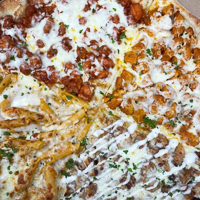 Thirty years in, Lansky’s is still the kind of place that turns first-timers into regulars. This family-owned Omaha and Council Bluffs institution has been making scratch pizza dough every morning since 1994 — 100% whole milk mozzarella, hand-cut vegetables, sirloin steak — and the consistency shows. Lunch specials and online ordering make weekday meals a breeze, a private meeting room seats up to 50, and a rewards program means every order works double duty alongside your myDinova points.