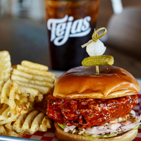 The Kahani Social Group — the team behind Amrina — traded fine-dining whites for a different kind of ambition with Pok Pok Po: Houston’s most exciting fried chicken concept. Celebrity Chef Jassi Bindra’s Texas-meets-India hot sauce is the secret weapon, coating cage-free, hormone-free chicken in bold, layered flavor that’s anything but ordinary. For the office, party trays loaded with smash burgers, chicken bites, and loaded fries make “crowd-pleasing” a huge understatement.