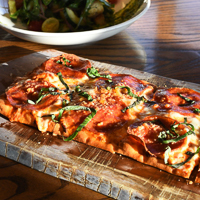 Treno Pizza Bar is a vibrant, modern Italian restaurant that goes far beyond pizza. Sure, their hand-tossed and brick oven pies are stellar — crafted with 00 flour and slow-proofed for maximum flavor — but the menu also includes gourmet pastas, seasonal dishes, and craveable bites like the ricotta & honey jar (a fan fave!) or wood-oven Caesar. With happy hour “aperitivo” Monday–Friday, private events, and full catering, Treno delivers corporate hospitality in every form.