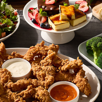 At Firebirds, everything from hand-cut steaks to fresh seafood is kissed by an open flame, offering bold flavor in a setting that’s polished but not pretentious. Business lunch, client dinner, or team meal? There’s a seat for every occasion. Think family-style office lunches, full-service catering, or a post-meeting unwind at the FIREBAR® with seasonal cocktails and bar bites. Bonus: Every glass of lemonade supports Alex’s Lemonade Stand Foundation to fight childhood cancer.