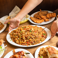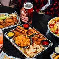 Bring the team together over a table full of flavor. Mambo Seafood blends Latin and Gulf Coast influences into craveable dishes—think sizzling platters, fried rice with a Mambonifico twist, and oysters shucked to order. Perfect for group lunches or casual celebrations, family meal deals feed up to 10 on a budget. Dining in? Check out the refreshing signature ‘Ritas and don’t sleep on the iconic Mambo Chelada. It’s equal parts refreshing and unforgettable!