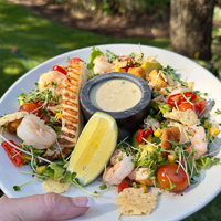Born from a love of simplicity, fresh ingredients, and its founders’ New York–Italian roots, Scopa offers business diners timeless Italian dishes and exceptional service. Just a short walk from the beach yet removed from the tourist bustle, it’s led by Food Network star Antonia Lofaso. Signature bites like Ricotta Crostini pair with refined crudo and playful cocktails, creating a warm, elevated setting. Inquire about hosting your next private event!